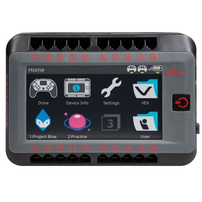 This runs VEXos, which is not a full-fledged operating system, per se, but enables the execution of custom binaries which can interface with I/O. I/O on the V5 brain includes quite a few things, most of which come from either the screen, the smart ports (pictured above on either vertical side of the screen), or the three-wire ports (not shown above).